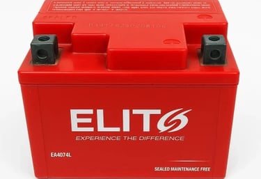 Elito two-wheeler batteries, manufactured by Amara Raja (the makers of Amaron), feature advanced VRLA technology for a completely maintenance-free experience. Designed for high cranking power and superior vibration resistance, they ensure reliable starts on tough roads. With a spill-proof design and long service life, Elito offers premium quality at an affordable price.